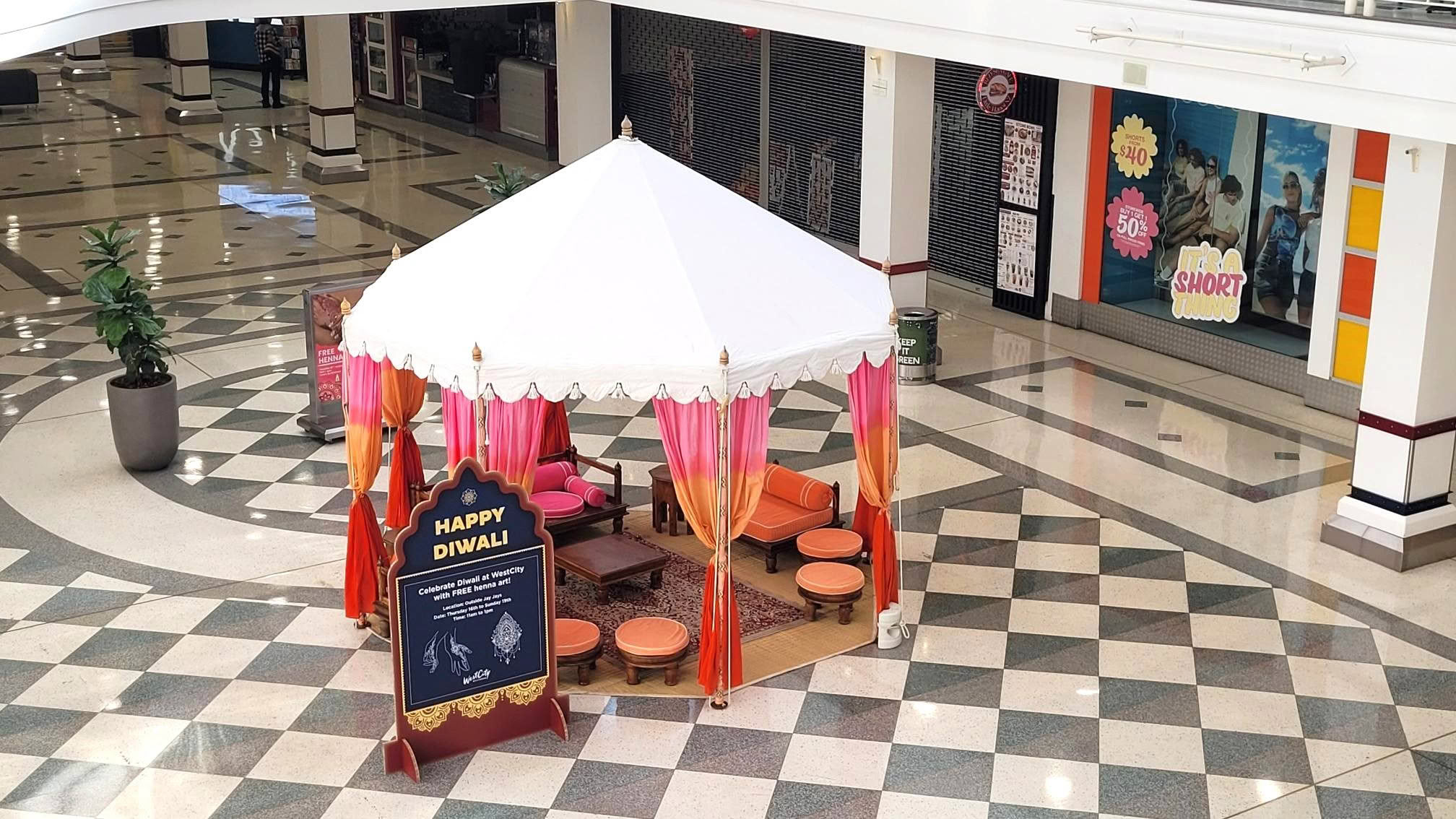 WestCity celebrated Diwali from Thursday, 16 October to Sunday, 19 October. A beautifully decorated Raj tent was set up on Level One, and Henna artists were present each day from 11 a.m. to 1 p.m. Between 60 and 80 people per day enjoyed the beauty of complimentary Henna art created by talented artists.